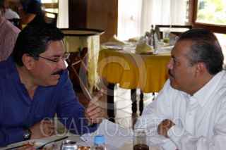 OAXACA, OAXACA 24JUNIO2010.- Manlio Fabio Beltrones, senador del PRI, se entrevisto con el Gobernador de Oaxaca Ulises Ruiz Ortiz, minutos antes de ofrecer una conferencia de prensa en donde ratifico su apoyo al candidato priísta a la gubernatura y afirmo "en política nada es coincidencia", respecto a las grabaciones telefonicas que se han dado a conocer en medios de comunicación. FOTO:MAX NÚÑEZ/CUARTOSCURO.COM