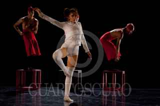 QUERÉTARO, QUERÉTARO, 24JUNIO2010.- La compañía de danza contemporánea "Aletheia: Cuerpo Escénico de México", se presentó en función especial para prensa previo a su temporada a realizarse en el Museo de la Ciudad, antes de su gira por el interior del país y Europa. En la imagen aspectos de la coreografía de Bárbara Alvarado "Caminantes del Polvo blanco". FOTO: DEMIAN CHÁVEZ/CUARTOSCURO.COM