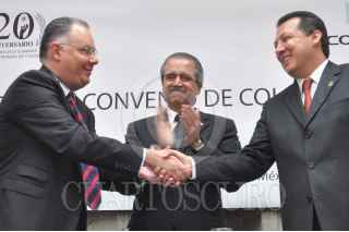 MÉXICO, D.F., 24JUNIO2010.- José ängel Cordova Villalobos, Secretario de Salud Federal y Raúl Plascencia Villanueva, presidente de la Comisión Nacional de Derechos Humanos, participaron en la firma del convenio de colaboración entre la Comisión Nacional de Arbitraje Médico (CONAMED) y la CNDH. FOTO: EDAURDO MORALES/CUARTOSCURO.COM