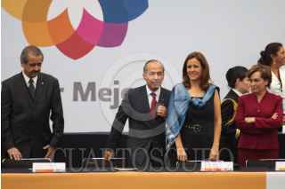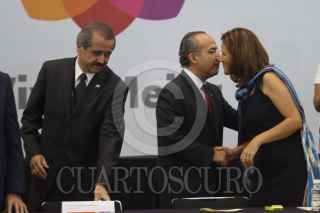 MÉXICO, D.F., 25JUNIO2010.- José Ángel Cordoba Villalobos, secretario de Salud, el presidente Felipe Calderón y su esposa Margarita Zavala al termino del evento de conclusiones de los foros regionales: "Hacia un modelo integral para la prevención y atención de las adicciones" que se realizo en el Centro Nacional de Desarrollo de Talentos Deportivos y Alto Rendimiento. FOTO: RODOLFO ANGULO/CUARTOSCURO.COM