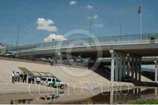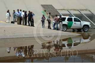 CIUDAD JUÁREZ, CHIHUAHUA, 25JUNIO2010.- Autoridades de los diferentes niveles de gobierno de los Estados Unidos, realizaron desde tempranas horas una fuerte movilización en las compuertas localizadas justo debajo del Puente de las Américas o Puente Libre. Al lugar arribaron elementos de la corporaciones del CBP, ICE y elementos de la patrulla de El Paso, mientras que uno de los helicópteros de la patrulla fronteriza vigilaba desde el aire ya que ubicó un narco túnel. FOTO: NACHO RUÍZ/CUARTOSCURO.COM