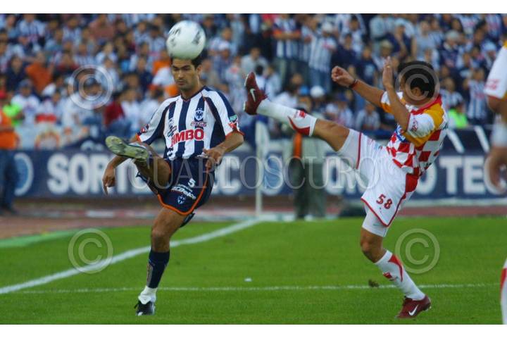 Monterrey, N.L. 31Enero2004.- Los rayados de Monterrey vencieron 3 gole a cero a los Tecos de la Autónoma de Guadalajara en la jornada 4 del torneo de clausura 2004. En la gráfica los jugadores Said Godinez (tecos) y Flavio Davino (Monterrey) disputan un balón. FOTO: Jorge López/CUARTOSCURO.COM
