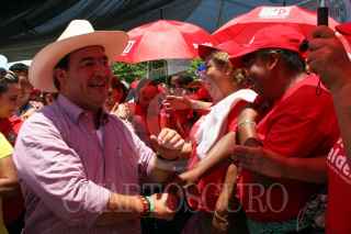 TAMPICO ALTO, VERACRUZ, 25JUNIO 2010.- Javier Duarte de Ochoa, candidato de la coalición PRI-Verde Ecologista “Veracruz para adelante”, dio su pre cierre de campaña política en la zona norte del estado de Veracruz, donde congrego a cientos de simpatizantes en los municipios de Tampico Alto y Pueblo Viejo. FOTO: JOSE CANDELARIO/CUARTOSCURO.COM