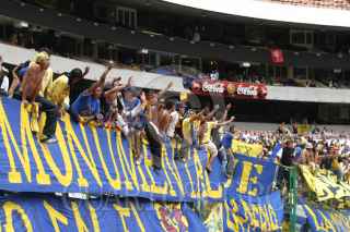 México, D.F.,01FEBRERO2004.- La llamada porra americanista La Monumental, festeja la victoria de sus Aguilas ante el Veracruz, este medio día en el Estadio Azteca. FOTO: Moisés Pablo/CUARTOSCURO.COM