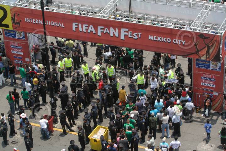 QUERÉTARO, QUERÉTARO, 27JUNIO2010.- Cientos de aficionados al futbol se reunieron frente a la mega pantalla instalada en Plaza de Armas para disfrutar el partido del mundial Sudafrica 2010 que celebró entre la Selección Mexicana y la Selección Argentina con un marcador final de 3-0 en favor de los sudamericanos. FOTO: DEMIAN CHÁVEZ/CUARTOSCURO.COM