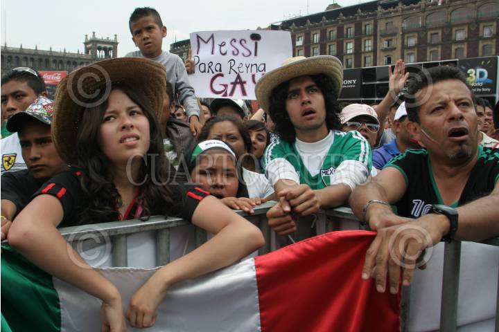QUERÉTARO, QUERÉTARO, 27JUNIO2010.- Cientos de aficionados al futbol se reunieron frente a la mega pantalla instalada en Plaza de Armas para disfrutar el partido del mundial Sudafrica 2010 que celebró entre la Selección Mexicana y la Selección Argentina con un marcador final de 3-0 en favor de los sudamericanos. FOTO: DEMIAN CHÁVEZ/CUARTOSCURO.COM