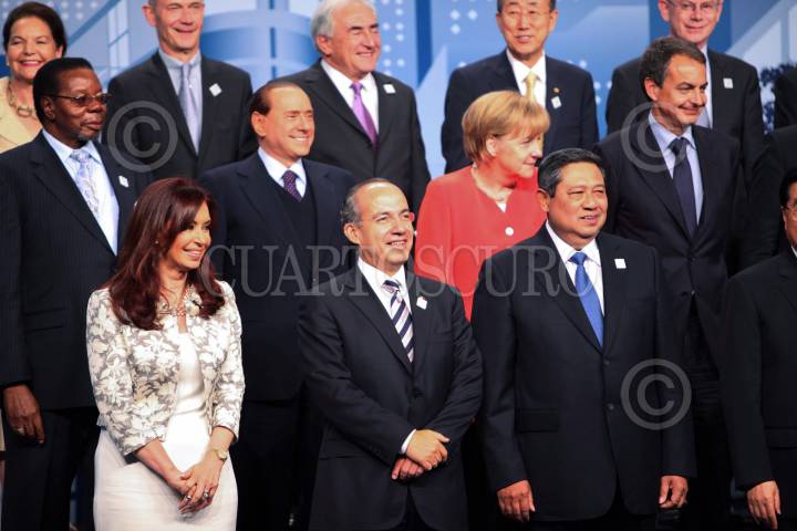 TORONTO, CANADA, 27JUNIO2010.- Felipe Calderón, Presidente de México, durante los lideres del G-20 en el Main, Press Theatre del Metro Toronto Convention Center. FOTO: ALFREDO GUERRERO/CUARTOSCURO.COM