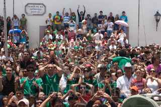 QUERÉTARO, QUERÉTARO, 27JUNIO2010.- El gobernador del Estado Jose Calzada y su familia asi como el gabinete y cientos de aficionados al futbol se reunieron frente a la mega pantalla instalada en Plaza de Armas para disfrutar el partido del mundial Sudafrica 2010 que celebró entre la Selección Mexicana y la Selección Argentina con un marcador final de 3-0 en favor de los sudamericanos. FOTO: DEMIAN CHÁVEZ/CUARTOSCURO.COM