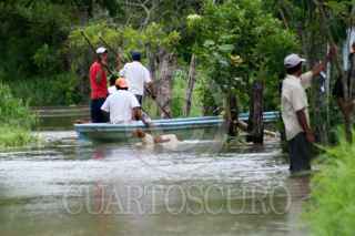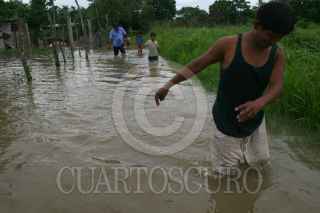 VILLAHERMOSA, TABASCO, 28JUNIO2010.- Las primeras inundaciones de hasta un metro de hondo se registran en la ranchería Torno Largo, en donde los pobladores piden ayuda a las autoridades estatales ante el temor que aumenten los niveles del río de la Sierra. Asi mismo CONAGUA reporto severas inundaciones en los municipios de Balancan, Jonuta y Emiliano Zapata además de un puente que se deslavo. FOTO: MARCO POLO GUZMÁN HERNÁNDEZ/CUARTOSCURO.COM