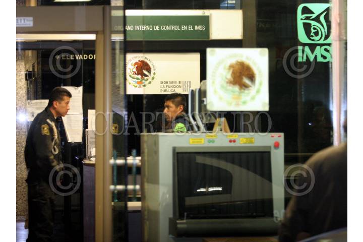 MEXICO, D.F., 29JUNIO2010.- Un comando armado asaltó esta madrugada las oficinas del IMSS ubicadas en el 479 de Circuito Interior Melchor Ocampo de la colonia Verónica Anzures, y robarse un cajero automático de la empresa Bancomer ubicado en el sótano. en el lugar, los guardias de seguridad fueron detenidos para deslindar responsabilidades. FOTO: LUZ ACEVEDO/CUARTOSCURO.COM