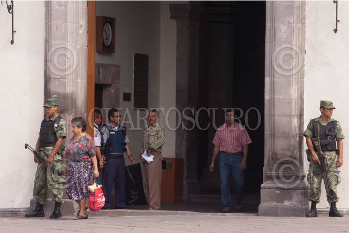 QUERÉTARO, QUERÉTARO, 30JUNIO2010.- Elementos del ejercito y policías, resguardan los hospitales donde se encuentran atendidos los delincuentes y personal de la DID. Después de la balacera suscitada esta madrugada, donde falleció un oficial de la DID y resultaron heridos siete elementos. FOTO: DEMIAN CHÁVEZ/CUARTOSCURO.COM