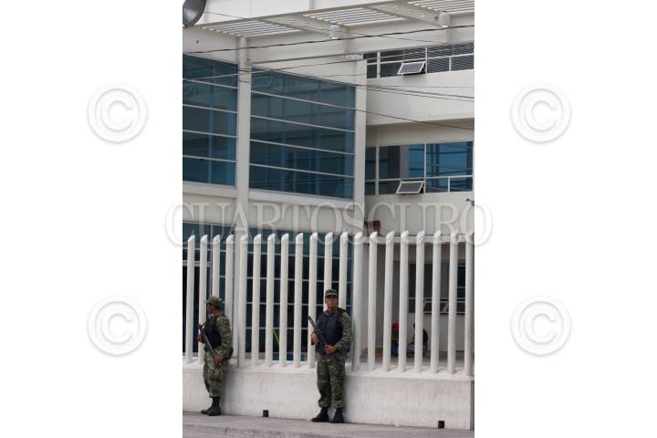 QUERÉTARO, QUERÉTARO, 30JUNIO2010.- Elementos del ejercito y policías, resguardan los hospitales donde se encuentran atendidos los delincuentes y personal de la DID. Después de la balacera suscitada esta madrugada, donde falleció un oficial de la DID y resultaron heridos siete elementos. FOTO: DEMIAN CHÁVEZ/CUARTOSCURO.COM