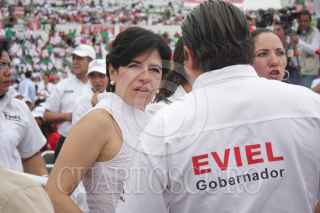 OAXACA, OAXACA 30JUNIO2010.- El candidato a Gobernador del Estado Eviel Perez Magaña en compañía de la Presidenta Nacional del Partido Revolucionario Institucional (PRI) Beatriz Paredes,realizo su cierre de campaña en el estadio de fútbol Benito Juarez. FOTO: ADRIANA ALVAREZ/CUARTOSCURO.COM