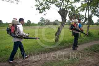 VILLAHERMOSA, TABASCO, 30JUNIO2010.- Brigadistas de la coordinación de fumigación contra el dengue adscritos al sector salud neobulizan casas habitaciones en el sector el Censo que resultaron inundadas por las lluvias que provoco la tormenta tropical "Alex". FOTO: MARCO POLO GUZMÁN HERNÁNDEZ/CUARTOSCURO.COM