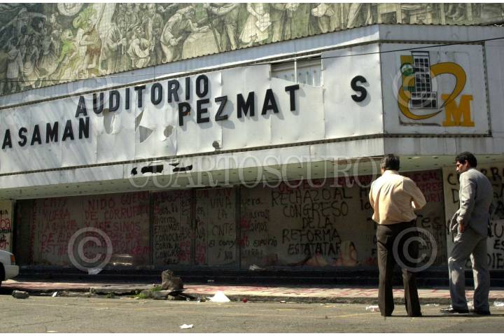 México D.F. 02 FEBRERO 2004.- Maestros de la CNTE protestan a las afueras de la secretaría de Gobernación, por las próximas actividades del V Congreso Nacional Extraordinario de Reforma Estatutaria magisterial. FOTO: Sandra Perdomo/CUARTOSCURO.COM
