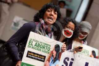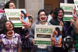 QUERÉTARO, QUERÉTARO, 01JULIO2010.- Activistas de diferentes ONG´s que integran el llamado "Pacto por la Vida, la libertad y los Derechos de las Mujeres", se manifestaron en la capital queretana por la censura que sufrió la campaña de Católicas por el Derecho a Decidir sobre "La iglesia no condena el aborto". FOTO: DEMIAN CHÁVEZ/CUARTOSCURO.COM