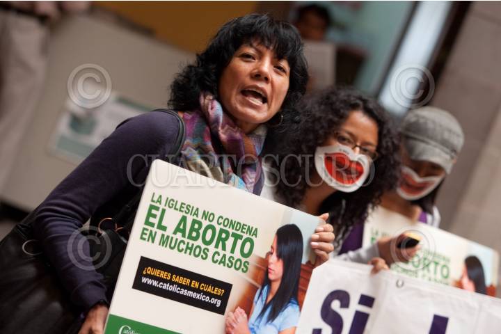 QUERÉTARO, QUERÉTARO, 01JULIO2010.- Activistas de diferentes ONG´s que integran el llamado "Pacto por la Vida, la libertad y los Derechos de las Mujeres", se manifestaron en la capital queretana por la censura que sufrió la campaña de Católicas por el Derecho a Decidir sobre "La iglesia no condena el aborto". FOTO: DEMIAN CHÁVEZ/CUARTOSCURO.COM
