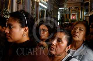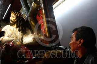 PUEBLA, PUEBLA, 01JULIO2010.- Cientos de fieles católicos, formaron largas filas para ver de cerca la imagen de Jesús Señor de las Maravillas, en la capilla que lleva su nombre ubicada en la calle 5 de mayo y 18 poniente. Los feligreses colocaron ofrendas de flores ante la imagen y realizaron oraciones para pedir por el bienestar de sus familias. FOTO: FRANCISCO GUASCO/CUARTOSCURO.COM