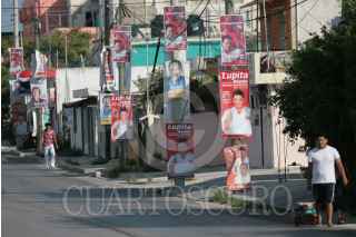 BENITO JUAREZ, QUINTANA ROO, 02 DE JULIO 2010.- A menos de 48 horas que se celebren la elecciones a Gobernador y Presidentes Municipales; la ciudad turistica de Cancún luce en las calles y colonias cargadas de propaganda electoral. FOTO: MARCO POLO GUZMÁN HERNÁNDEZ/CUARTOSCURO.COM