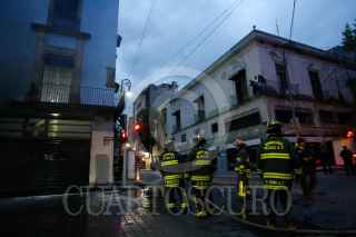 MEXICO, D.F., 02JULIO2010.- Se registro un incendio en un transformador subterráneo conocido como mofa en la esquina de las calles de Brasil y Donceles en el Centro Histórico en donde elementos del Heroico Cuerpo de Bomberos acudieron para apagarlas. FOTO: CUARTOSCURO.COM