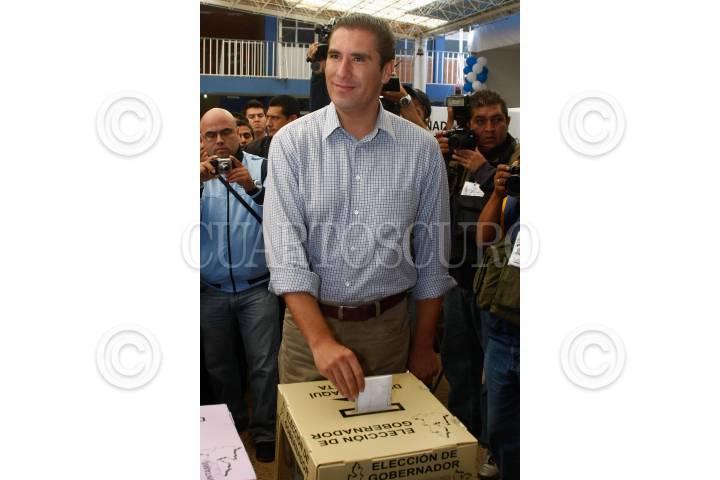 PUEBLA, PUEBLA 04JULIO2010.- Un automóvil Volkswagen Bora placas TNK-72-42, que portaba propaganda del candidato a gobernador por la coalición "Compromiso por Puebla" Rafael Moreno Valle, fue estrellado del cristal trasero por presuntos provocadores enviados por el PRI. FOTO: FRANCISCO GUASCO/CUARTOSCURO.COM