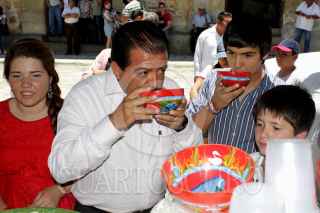 OAXACA, OAXACA, 04JULIO2010.- Eviel Perez Magaña, candidato a Gobernador del Estado por el Partido Revolucionario Institucional (PRI), dIO un paseo en compañia de su familia por el Zócalo de la Ciudad. FOTO: ADRIANA ALVAREZ/CUARTOSCURO.COM