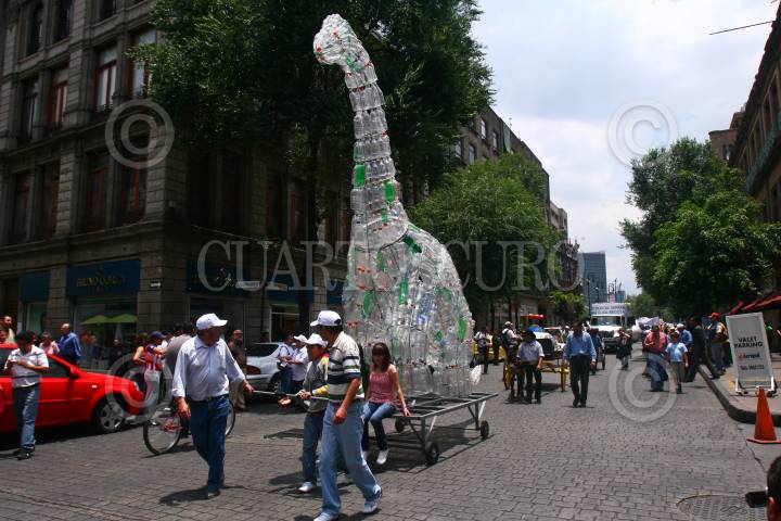MÉXICO, D.F., 04JULIO2010.- Trabajadores de limpieza de la ciudad de México participaron en un desfile sobre las calles Cinco de Mayo y Eje Central, con el que se da inicio al proyecto “Residual. Intervenciones Artísticas en la Ciudad” de parte de la fundación Jumex, fundación del Centro Histórico y el Museo Soumaya del artista mexicano Eduardo Abaroa. FOTO: RODOLFO ANGULO/CUARTOSCURO.COM