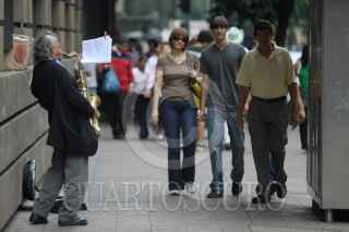 MÉXICO, D.F., 04JULIO2010.- Un músico callejero toca el saxofón en calles del Centro Histórico a cambio de una monedas. FOTO: RODOLFO ANGULO/CUARTOSCURO.COM