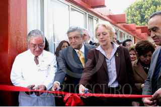 México, D.F.,03FEBREO2004.- La Dr. Assa Critina Laurell, le explica a el jefe de gobierno, Andrés Manuel López Obrador, el funcionamiento del recien centro de tratamiento de agua del Hospital Infantil de Legaria. FOTO: Moisés Pablo/CUARTOSCURO.COM
