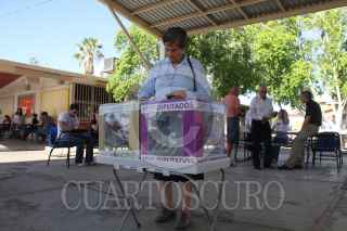 MEXICALLI, BAJA CALIFORNIA, 04JULIO2010.- La religiosa Esiquia Silva tuvo que esperar por espacio de una hora para que abrieran la casilla 223 en la colonia Cuahutemoc ya que no había mas que dos representantes de casilla, en la jornada electoral que vivió el estado para elegir munícipes y diputados. FOTO: JORGE GALINDO/CUARTOSCURO.COM