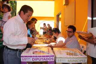 MEXICALLI, BAJA CALIFORNIA, 04JULIO2010.- Francisco Pérez Tejada, candidato a la alcaldía por la Alianza por un Gobierno Responsable, acudió acompañado de su esposa a emitir su voto, esto en la casilla 235 básica ubicada en la calle Zaragoza y ''J'' dela colonia Nueva. FOTO: CUARTOSCURO.COM