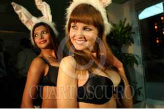 México D.F. 04 Febrero 2004.- Con una fiesta se celebro del aniversario de la revista Playboy México, dos modelos vestidas al estilo playmate le dieron la bienvenida a los asistentes. FOTO: Juan Pablo Zamora/CUARTOSCURO.COM
