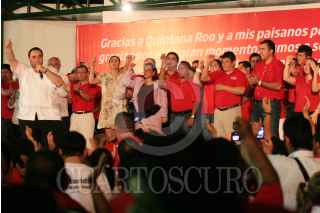 CHETUMAL, QUINTANA ROO, 05JULIO2010.- Roberto Borge Angulo se proclamo vencedor de forma arrolladora esta medianoche como el gobernador electo de Quintana Roo en la sede del PRI estatal ante más de dos centenares de ciudadanos. FOTOS: MARCO POLO GUZMÁN HERNÁNDEZ/CUARTOSCURO.COM