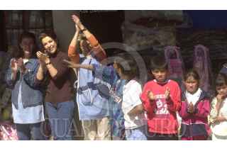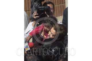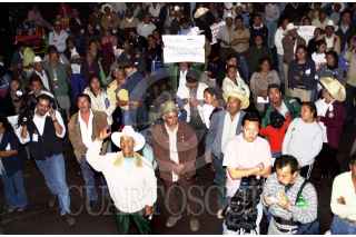 México D.F. 04 FEBRERO 2004.- Ejidatarios de San Salvador Atenco también formaron parte del contingente que se encontraba a las afueras de la secretaria de Gobernación, en apoyo de los campesinos de Tlalnepantla, Morelos. FOTO: Sandra Perdomo/CUARTOSCURO.COM