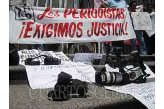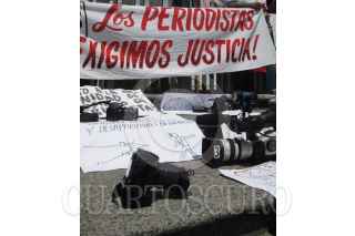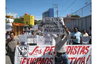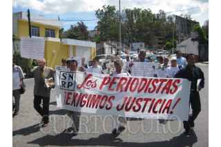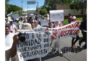 CHILPANCINGO, GUERRERO, 05JULIO2010.- Marcha que realizaron periodistas de los diversos medios de comunicacion por las principales calles y avenidas de la capital del estado, encabezados por Salomon Cruz Gallardo, secretario general de la delegacion XVII del Sindicato Nacional de Redactores de la Prensa (SNRP), para exigir a los autoridades de los tres niveles de gobierno el esclarecimiento de los asesinatos de los periodistas que se han dado a ultimas fechas en la entidad, asi mismo para exigir un alto al hostigamiento, amenazas y respeto al ejercicio periodistico. FOTO: OSCAR ALVARADO/CUARTOSCURO.COM