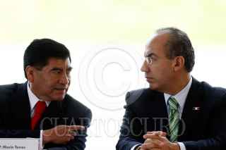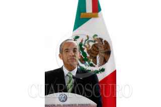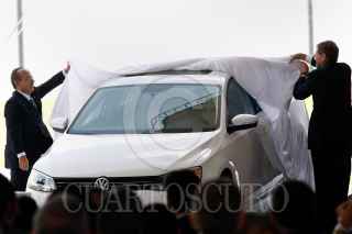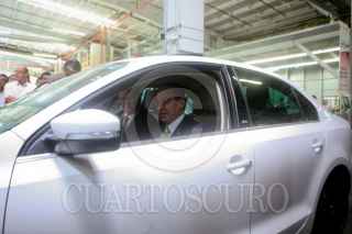 PUEBLA, PUEBLA 06JULIO2010.- Felipe Calderón Hinojosa, Presidente de la República, visitó el nuevo segmento poniente de la planta armadora Volkswagen de México, además de la presentación del auto Bicentenario 2010. FOTO: FRANCISCO GUASCO/CUARTOSCURO.COM