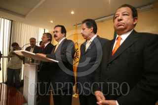 MÉXICO, D.F., 06JULIO2010.- Luis Walton, Presidente del Partido Convergencia junto a Antonio Mejia Haro Candidato a la Gubernatura en el estado de Zacatecas; Jesus Ortega, Presidente Nacional del PRD y Manuel Camacho Solis, Coordinador del Dialogo para la Reconstrucción de México, en conferencia de prensa en las Instalaciones de la Sede Nacional del PRD. FOTO: CUARTOSCURO.COM