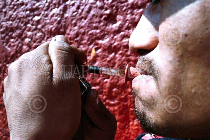 México D.F. 05 Febrero 2004. Fumando cocaína o marihuana, transcurren los días del "Pocholo", que recuerda que su padre lo golpeaba constantemente y que lo arrojo a la calle siendo un niño, los amigos le invitaron un "toque" y así empezo todo. FOTO: Edgar Rodríguez/CUARTOSCURO.COM