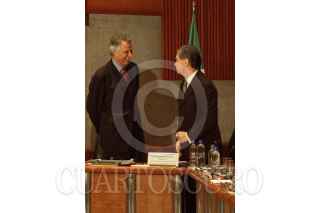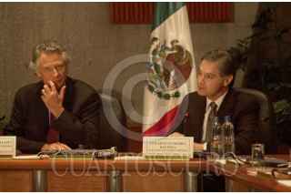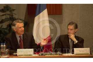 México D.F. 05 FEBRERO 2004.- Dominique De Villerpin, ministro de Francia y el canciller Luis Ernesto Derbez, al término de reunión que sostuvieron en las instalaciones de la secretaría de Relaciones Exteriores. FOTO: Sandra Perdomo/CUARTOSCURO.COM