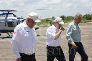 PIEDRAS NEGRAS, COAHUILA, 07JULIO2010.- El licenciado José Manuel Maldonado Maldonado, presidente municipal de Piedras Negras y el licenciado Horacio del Bosque Dávila, secretario de Obras Públicas del estado de Coahuila durante un recorrido realizado sobre el cauce del río Escondido donde supervisaban los daños causados por la creciente de los ríos que ayer amenazaban Piedras Negras. Mismo recorrido que realizaron esta mañana del miércoles y en el que perdieran la vida junto con el ingeniero Ricardo Garza Bermea, director de protección civil municipal. FOTO: MANUEL RODRIGUEZ MURO/ZOCALO DE PIEDRAS NEGRAS/CUARTOSCURO.COM