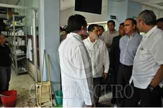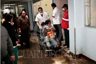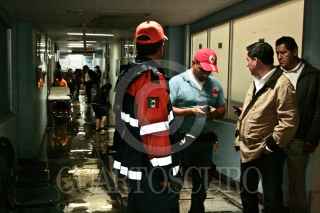 SAN JUAN DEL RIO, QUERÉTARO, 07JULIO2010.- Aspectos de la inundación en el Hospital General de San Juan del Rio tras la lluvia de esta madrugada. Al lugar asistió el presidente municipal Gustavo Nieto para evaluar las perdidas que se acercan a los diez millones de pesos. Por la mañana ingresó el gobernador del estado José Calzada junto con el secretario de salud. FOTO: DEMIAN CHÁVEZ/CUARTOSCURO.COM