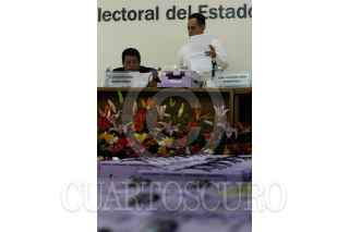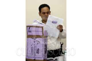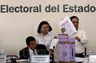 PUEBLA, PUEBLA 08JULIO2010.- Los consejeros electorales del Instituto Electoral del Estado de Puebla (IEE), realizaron el computo de votos. En el conteo del municipio de Tlaola, se detectaron 163 boletas falsas a favor de la alianza "Puebla Avanza" PRI-PVEM. FOTO: FRANCISCO GUASCO/CUARTOSCURO.COM