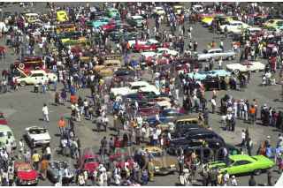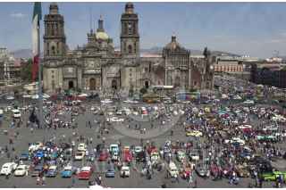 México D.F. 15 FEBRERO 2004.- Cientos de autos se exhibieron en al zócalo de la ciudad, durante la " Gala internacional de automóviles antiguos" que en los dias 21 y 22 de este mes se presentaran en el Auditorio Nacional, organizado por la Federación Mexicana de automovilismo y algunos clubes. FOTO: Sandra Perdomo/CUARTOSCURO.COM