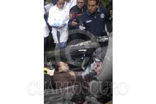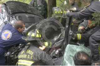 MÉXICO, D.F., 08JULIO2010.- Un sujeto de aproximadamente 27 años, murió al quedar prensado dentro de su auto Civic placas 156-WEZ al estamparse contra un poste en la autopista México-Toluca, frente a la puerta 5 de la Universidad Ibero Americana en la Colonia Santa Fe. FOTO: LUIS CARBAYO/CUARTOSCURO.COM