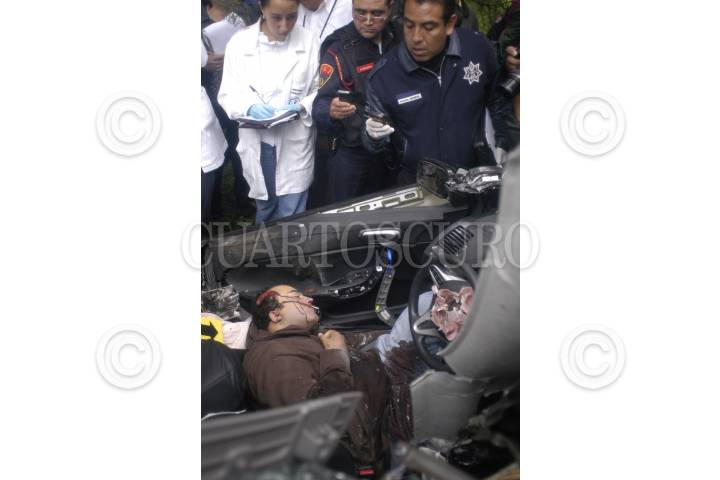 MÉXICO, D.F., 08JULIO2010.- Un sujeto de aproximadamente 27 años, murió al quedar prensado dentro de su auto Civic placas 156-WEZ al estamparse contra un poste en la autopista México-Toluca, frente a la puerta 5 de la Universidad Ibero Americana en la Colonia Santa Fe. FOTO: LUIS CARBAYO/CUARTOSCURO.COM