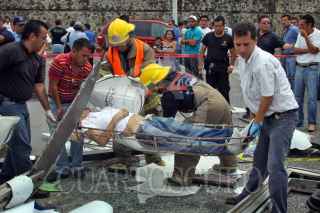 BOCA DEL RÍO, VERACRUZ., 09JULIO2010.- El exceso de velocidad y la falta de precaución provocó la muerte de un joven de aproximadamente 25 años que conducía sobre la zona turística en un automóvil deportivo de lujo el cual estrelló contra un parabus. Al lugar acudieron corporaciones de rescate para el levantamiento del cadáver que se encontraba bajo los fierros retorcidos. FOTO: FÉLIX MÁRQUEZ/CUARTOSCURO.COM