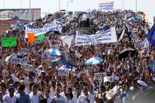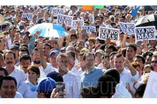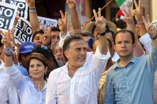 VERACRUZ, VERACRUZ. 11JULIO2010.- Acompañado por el dirigente nacional del PAN, César Nava, el candidato de la coalición "Viva Veracruz", Miguel Ángel Yunes Linares, encabezo la llamada marcha por la democracia y por la defensa del voto de los veracruzanos, misma que se realizo por las principales calles del centro de la ciudad. FOTO: JOSÉ CANDELARIO/CUARTOSCURO.COM