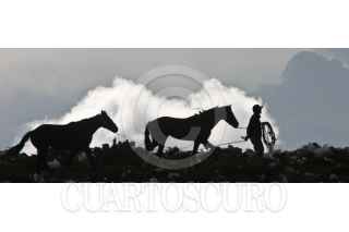 VETA GRANDE, ZACATECAS, 12JUNIO2010.- Un campesino recorre la pradera zacatecana en compañía de sus dos caballos. FOTO: MISAEL VALTIERRA/CUARTOSCURO.COM