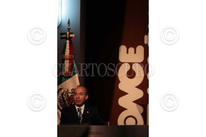 MÉXICO, D.F. 12JULIO2010.- Felipe Calderón Hinojosa presidente de México asistió como invitado especial a la celebración de la firma del Convenio de la ampliación de Cobertura de Once TV México entre el Instituto Politecnico Nacional, Once TV México y el Organismo Promotor de Medios Audiovisuales. En el evento estuvieron presente Yoloxochitl Bustamante Diez; Directora General del IPN, Alonso Lujambio Irazabal; Secretario de Educación Pública, Fernando Sariñana Marquez; Director General de canal Once TV México, Fernando Gómez Mont Urueta; Secretario de Gobernación y Juan Francisco Molinar Horcasitas; Secretario de Comunicaciónes. FOTO: MARCO POLO GUZMÁN HERNÁNDEZ/CUARTOSCURO.COM