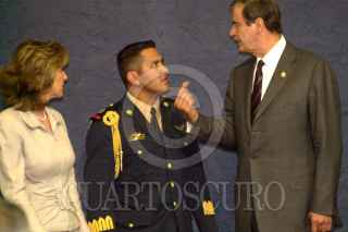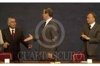 México, D.F. 16 FEBRERO 2004.- El presidente Vicente Fox da instrucciones a un asistente militar, durante la ceremonia de toma de protesta de la mesa directiva de México contra la delincuencia A.C., en el salón Adolfo López Mateos de los Pinos. FOTO: Sandra Perdomo/CUARTOSCURO.COM